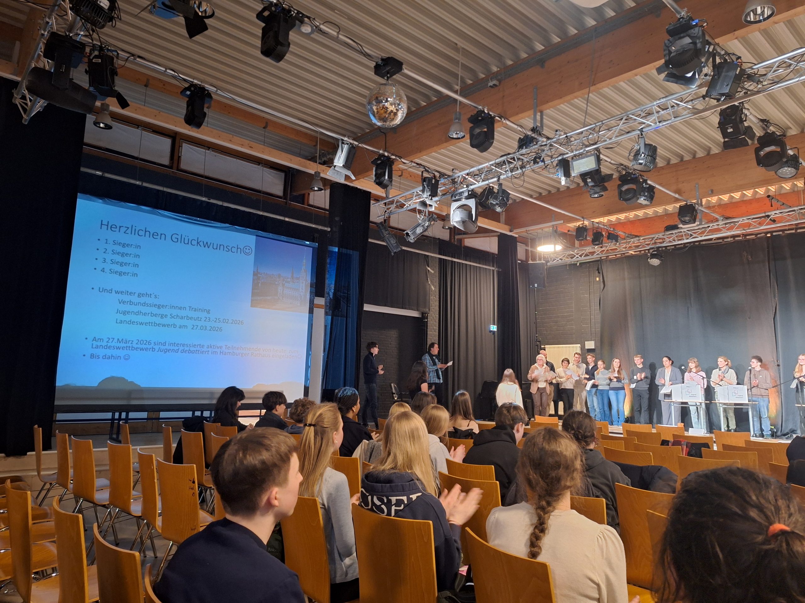 Mit großer Motivation, Engagement und Teamgeist nahm unsere Schule in diesem Jahr am Wettbewerb „Jugend debattiert“ teil. Mit insgesamt acht Debattantinnen und Debattanten sowie fünf Jurorinnen und Juroren waren wir stark vertreten – ein Auftritt, der von allen Beteiligten als äußerst positiv wahrgenommen wurde und das große Interesse unserer Schule an einer lebendigen Debattenkultur widerspiegelt.