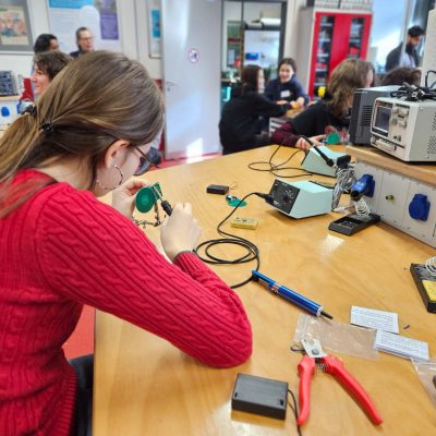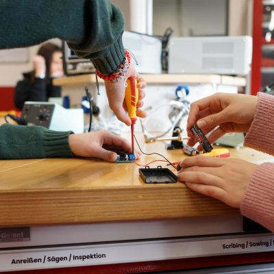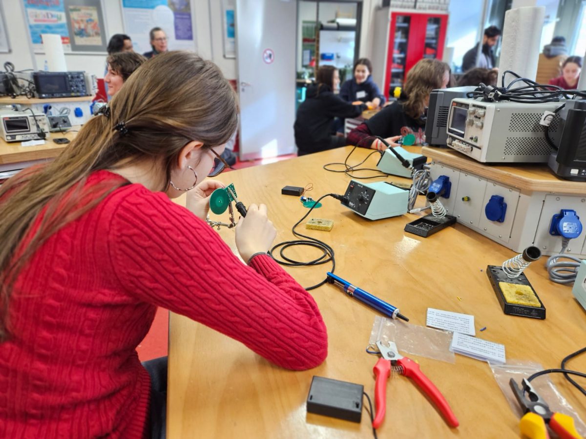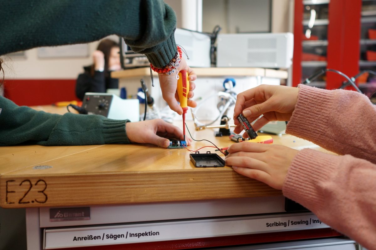 Am Dienstag durften wir im WorkINGLab einen Lötworkshop besuchen, in dem wir unsere eigenen Metalldetektoren hergestellt haben. Dieses kam bei uns allen sehr gut an. Auch an diesem Tag bekamen wir eine detaillierte Führung durch unterschiedliche Werkstätten. Wir bekamen Einblicke in das Forschen, Experimentieren und Bauen der Studenten und Studentinnen. Das Highlight der Führung waren der riesige Lasercutter, die sämtlichen 3D Drucker und das Siedler von Catan Spiel, welches von einer Projektgruppe so umgestaltet wurde, dass es auch für Menschen mit Sehbeeinträchtigung oder Sehbehinderung zugänglich und spielbar ist.