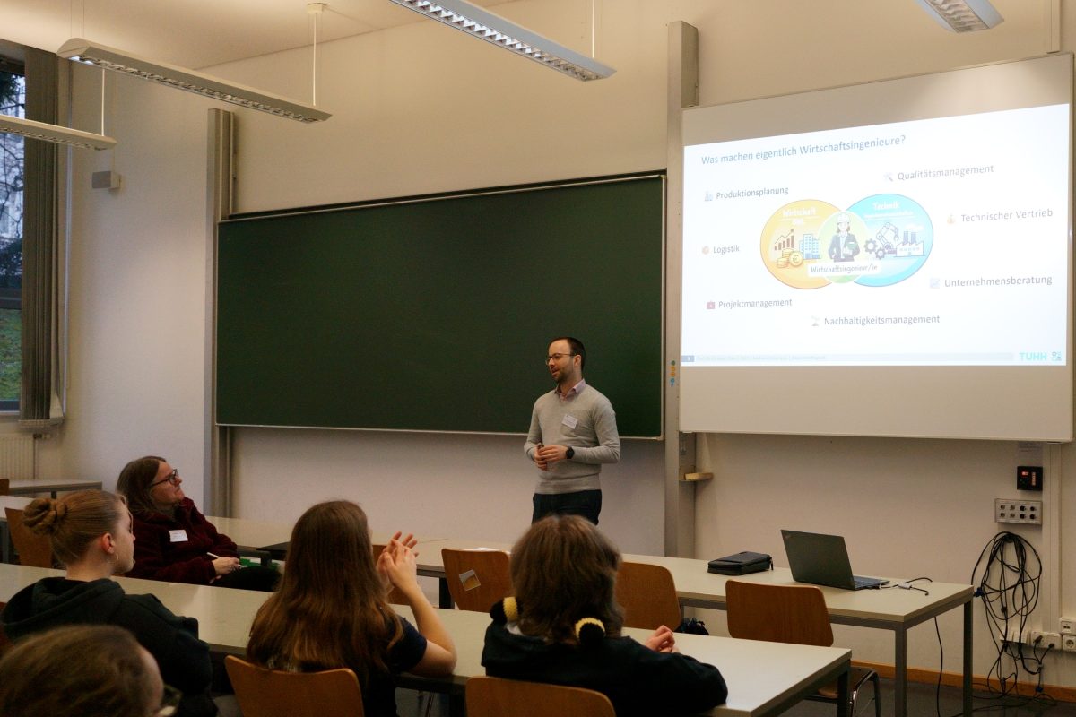An unserem vierten Tag an der TUHH, dem Donnerstag, nahm sich Professor Dr. Christian Thies, Leiter des Institutes für Logistik und Unternehmensführung, für uns Zeit und hat mit uns über die Zukunft von Wasserstoffflugzeugen geredet. In einer spannenden Präsentation erklärte er uns nicht nur, was die logistischen Herausforderungen bei der Herstellung des Wasserstoffes sind, sondern auch wie ein Wasserstoffflugzeug technisch funktioniert. Dabei ging es um die Unterbringung des Wasserstoffes, die benötigte Infrastruktur für den Transport und die Sicherheits- und Klimaaspekte.