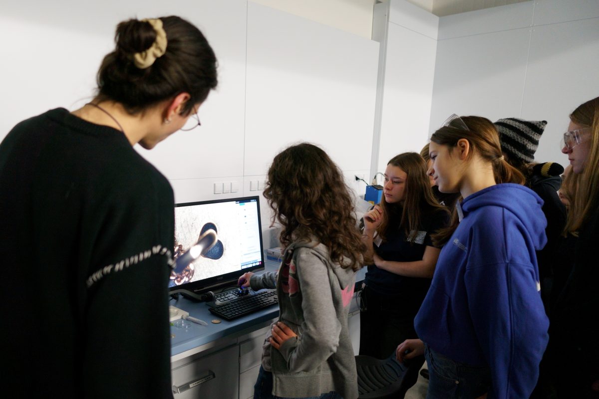Danach bekamen wir eine Tour durch das chemische Zentrallabor der Universität, bei der uns die vielen Maschinen und Aufbauten erklärt wurden. Besonders beeindruckend war es, zu sehen, wie in so einem Labor gearbeitet wird und worauf man besonders achten muss. Mit Hilfe eines Analysenmikroskops, konnten wir im Anschluss dann herausfinden, aus welchen Elementen beziehungsweise Stoffen unser jeweiliger Schmuck besteht. Anhand von Mini-Laserstrahlen haben wir die genaue Zusammensetzung von Ketten, Münzen und Ohrringen herausgefunden. Manchmal mit echten Überraschungen!