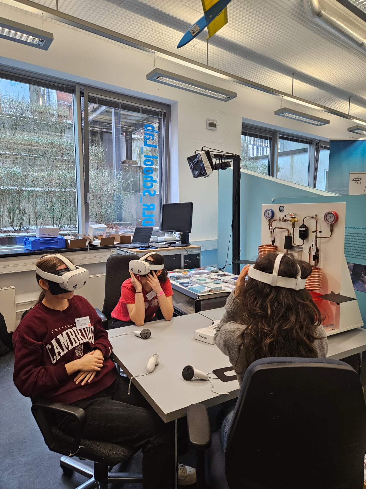Unsere Woche begann mit einem vielseitigen Programm im DLR_School_Lab, welches uns von 3 Studenten und Studentinnen vorgestellt wurde. Von Flugsimulator über ein Schwingungsexperiment bis hin zu selbstgemachten Handwärmern war alles dabei. Am Ende des Tages bekamen wir noch eine kleine Führung durch die großen Hallen, wo wir all unsere Fragen stellen konnten.