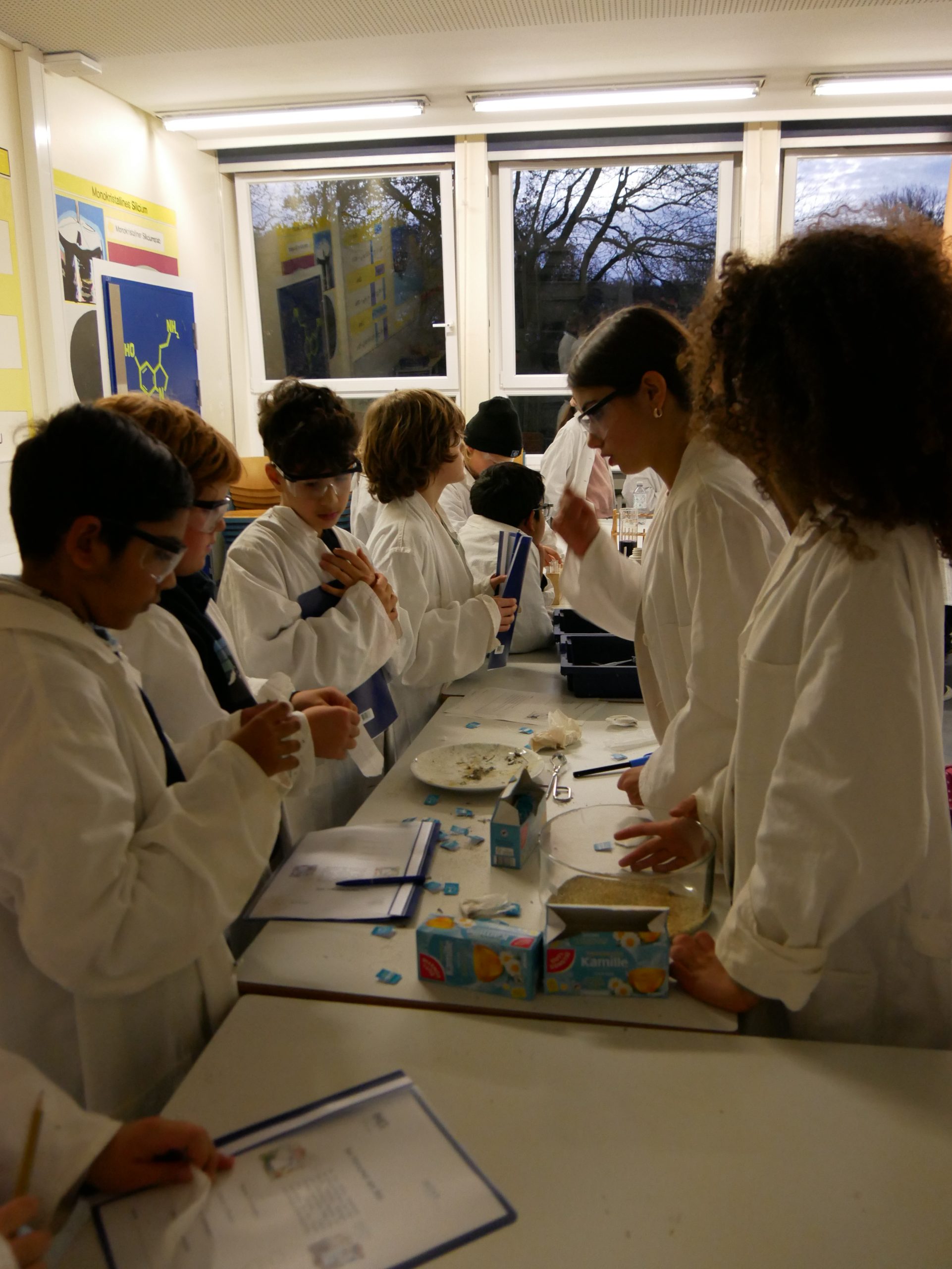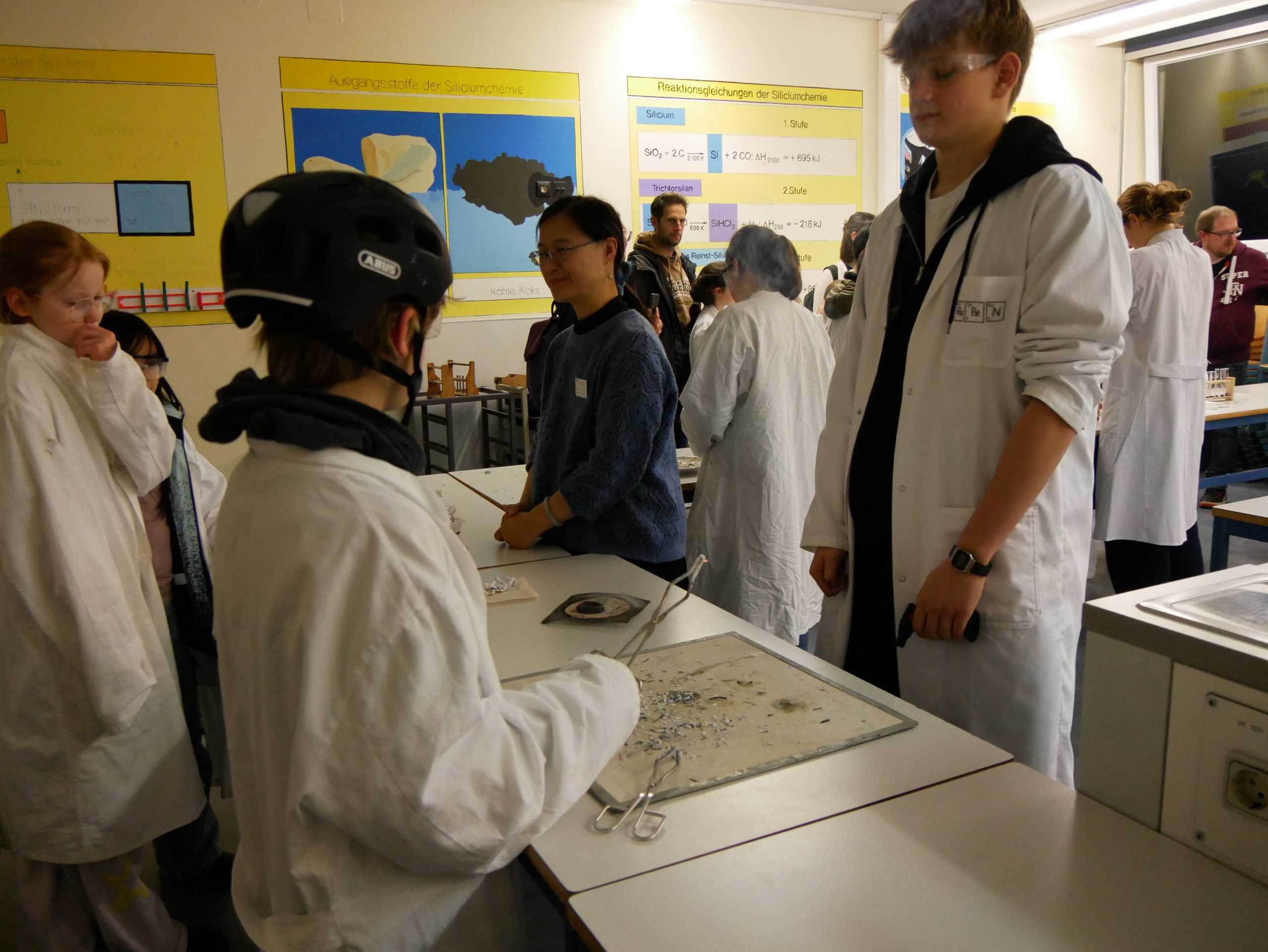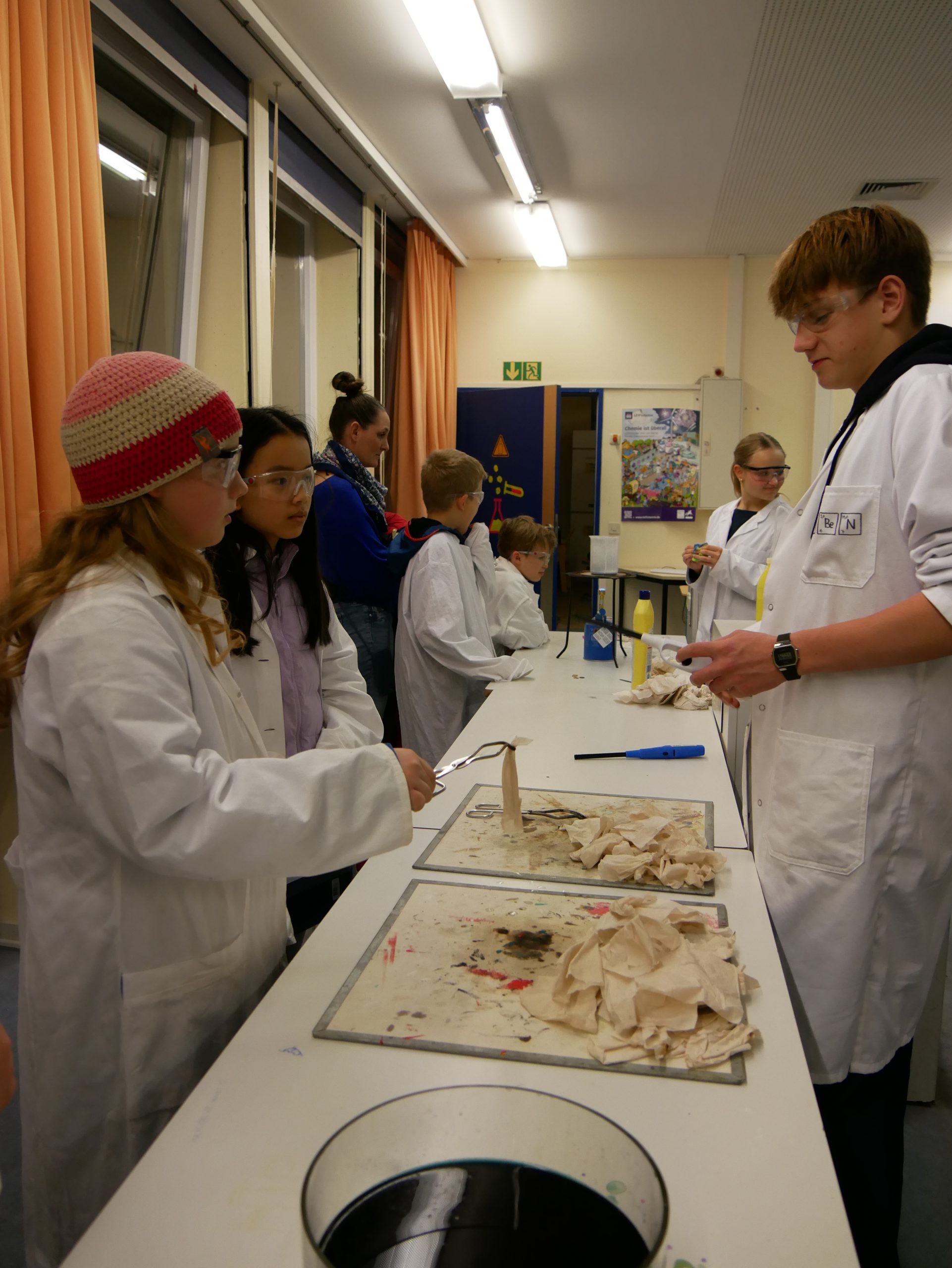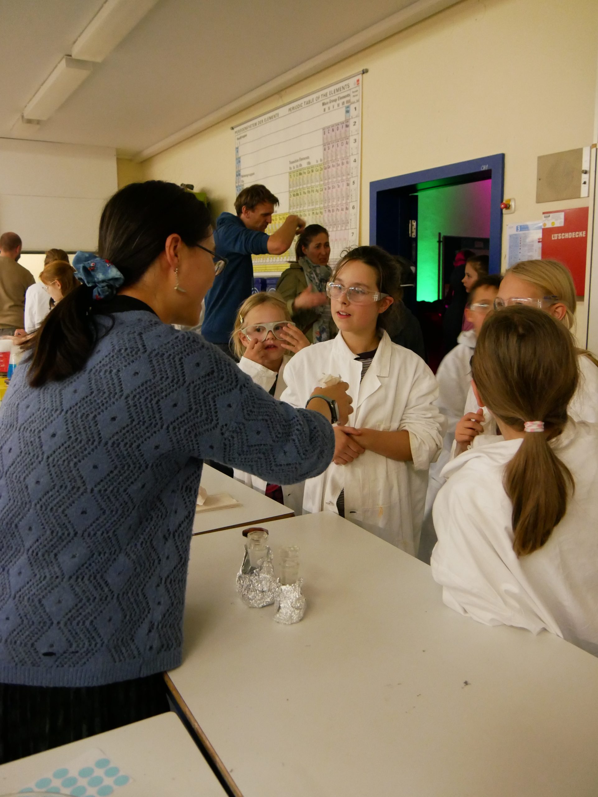 Ein herzlicher Dank gilt allen engagierten Kolleginnen und Kollegen. Frau Ni und Herr Vatter setzten sich in der Chemie ein, Frau Krugenberg und Herr Kollhorst in der Biologie, Frau Gerfen und Herr Weseloh in der Physik und Frau Schäfer und Herr Penkin in der Informatik. Gemeinsam mit tatkräftiger Unterstützung vieler eifriger Schülerinnen und Schüler aus verschiedenen Jahrgängen wurde der Nachmittag zu einem eindrucksvollen Erlebnis, das bleibende Erinnerungen schaffen konnte.