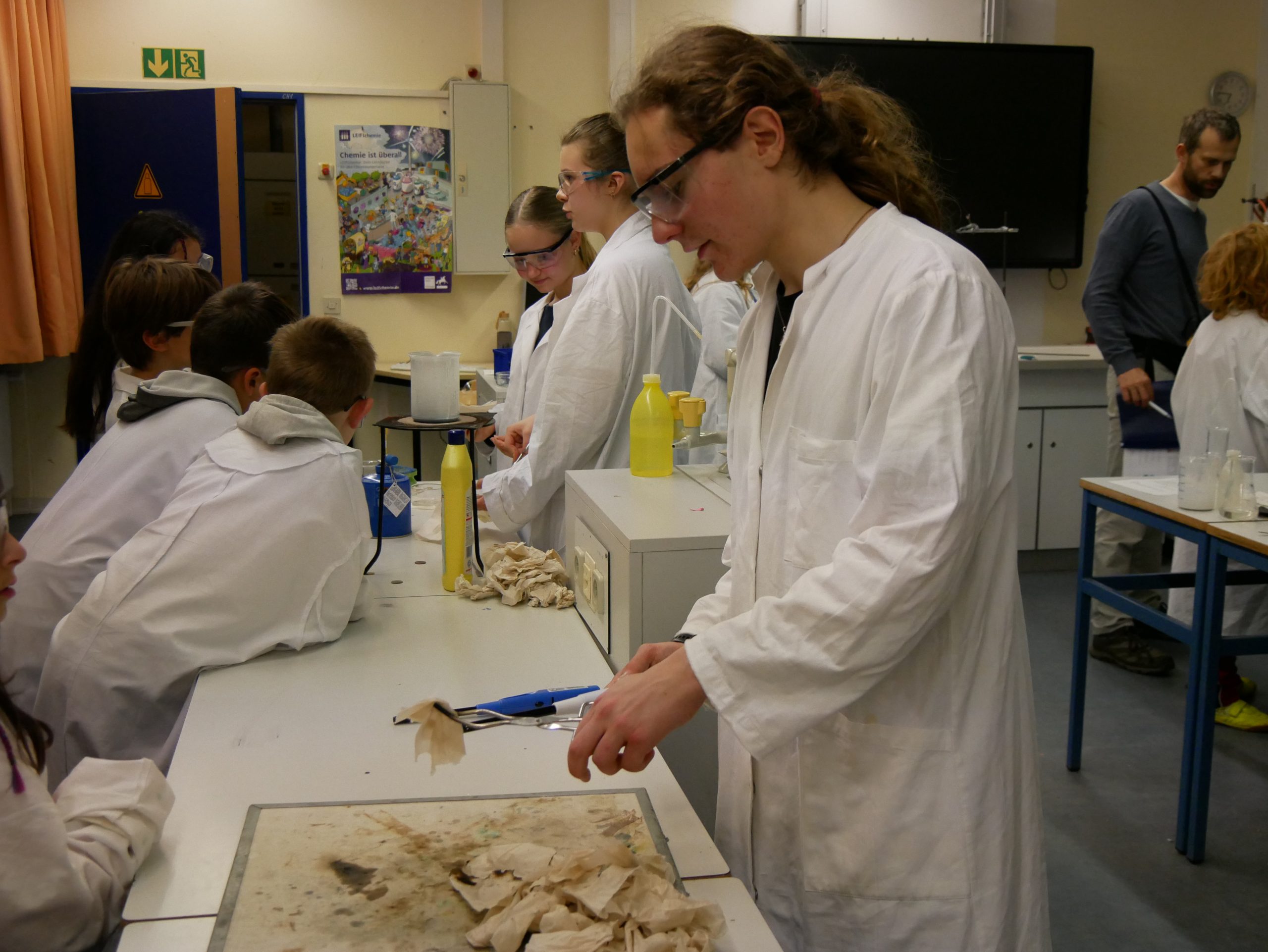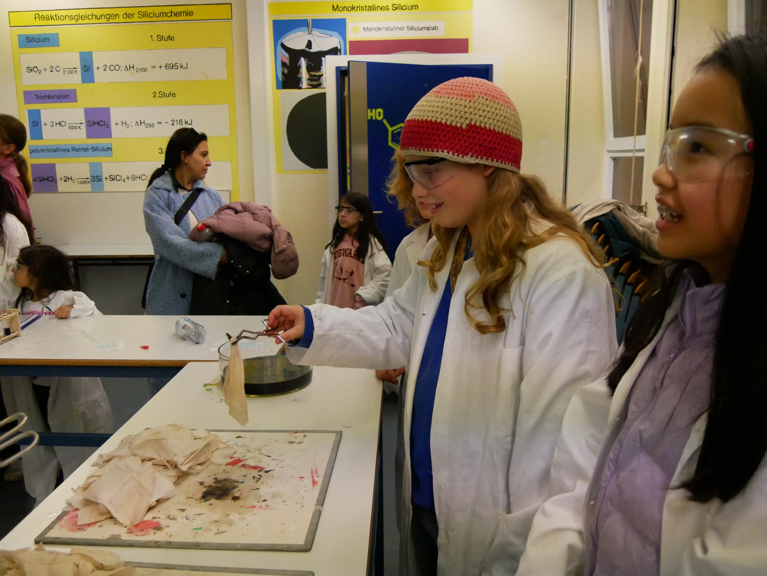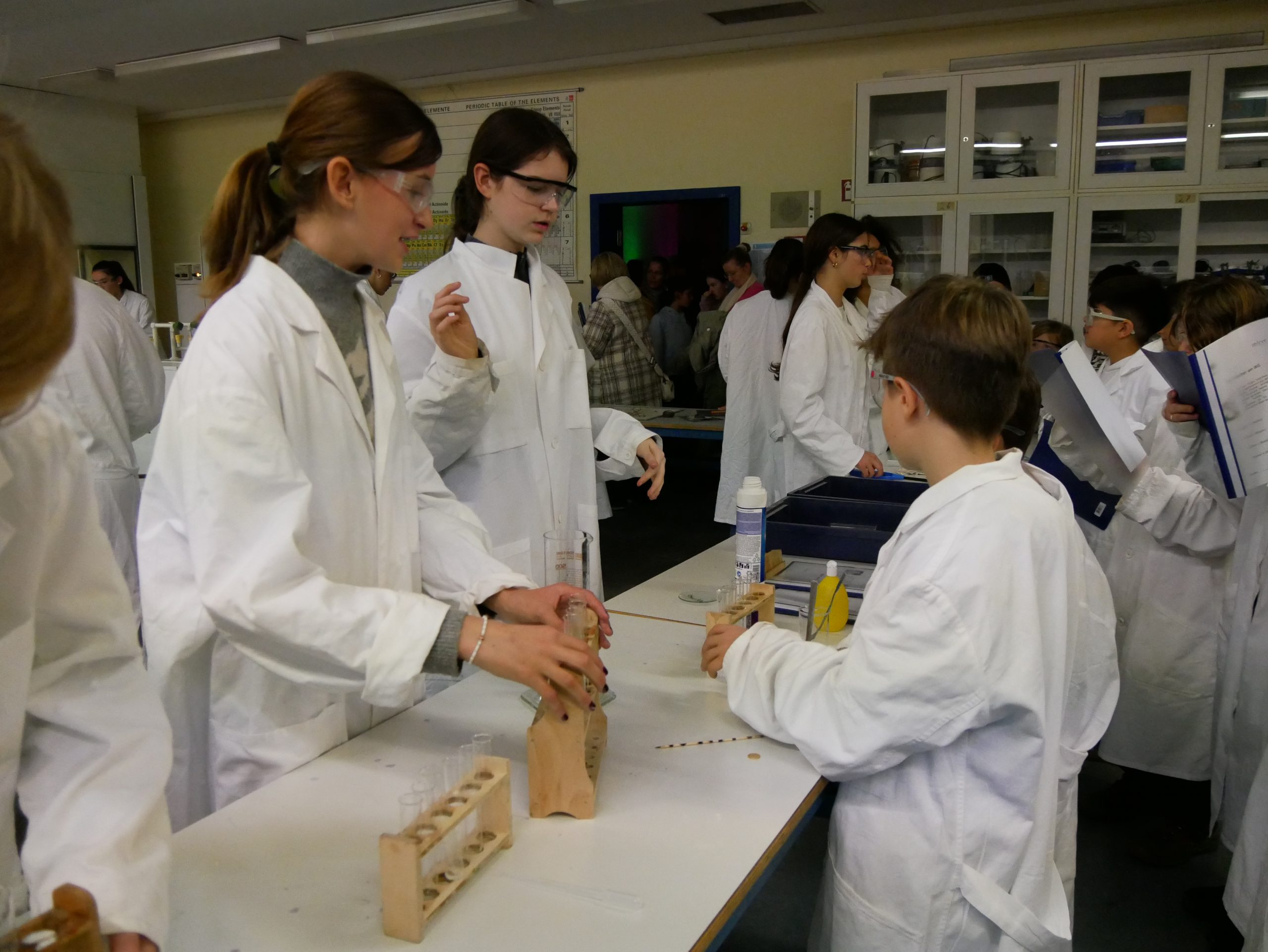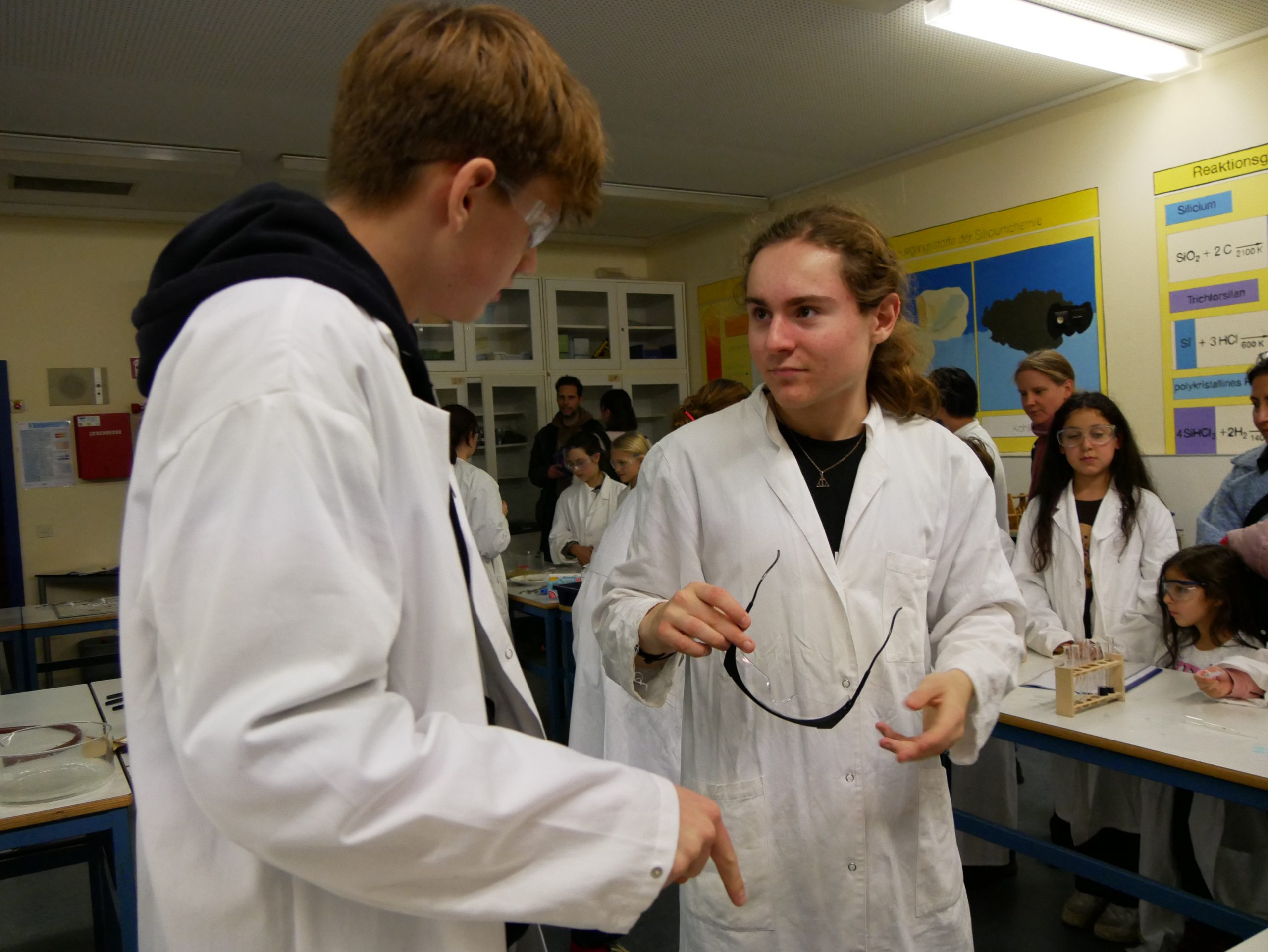Ein herzlicher Dank gilt allen engagierten Kolleginnen und Kollegen. Frau Ni und Herr Vatter setzten sich in der Chemie ein, Frau Krugenberg und Herr Kollhorst in der Biologie, Frau Gerfen und Herr Weseloh in der Physik und Frau Schäfer und Herr Penkin in der Informatik. Gemeinsam mit tatkräftiger Unterstützung vieler eifriger Schülerinnen und Schüler aus verschiedenen Jahrgängen wurde der Nachmittag zu einem eindrucksvollen Erlebnis, das bleibende Erinnerungen schaffen konnte.