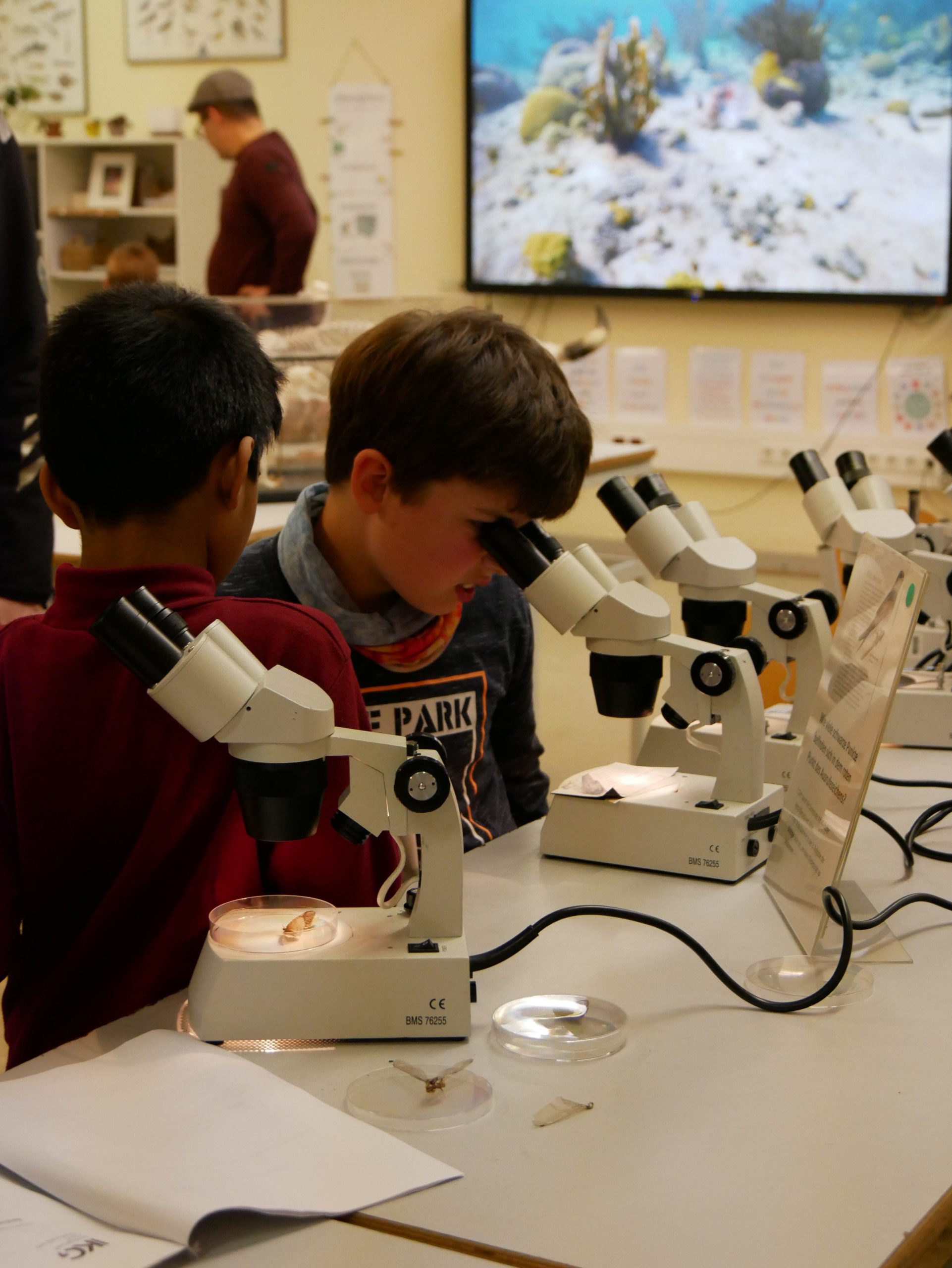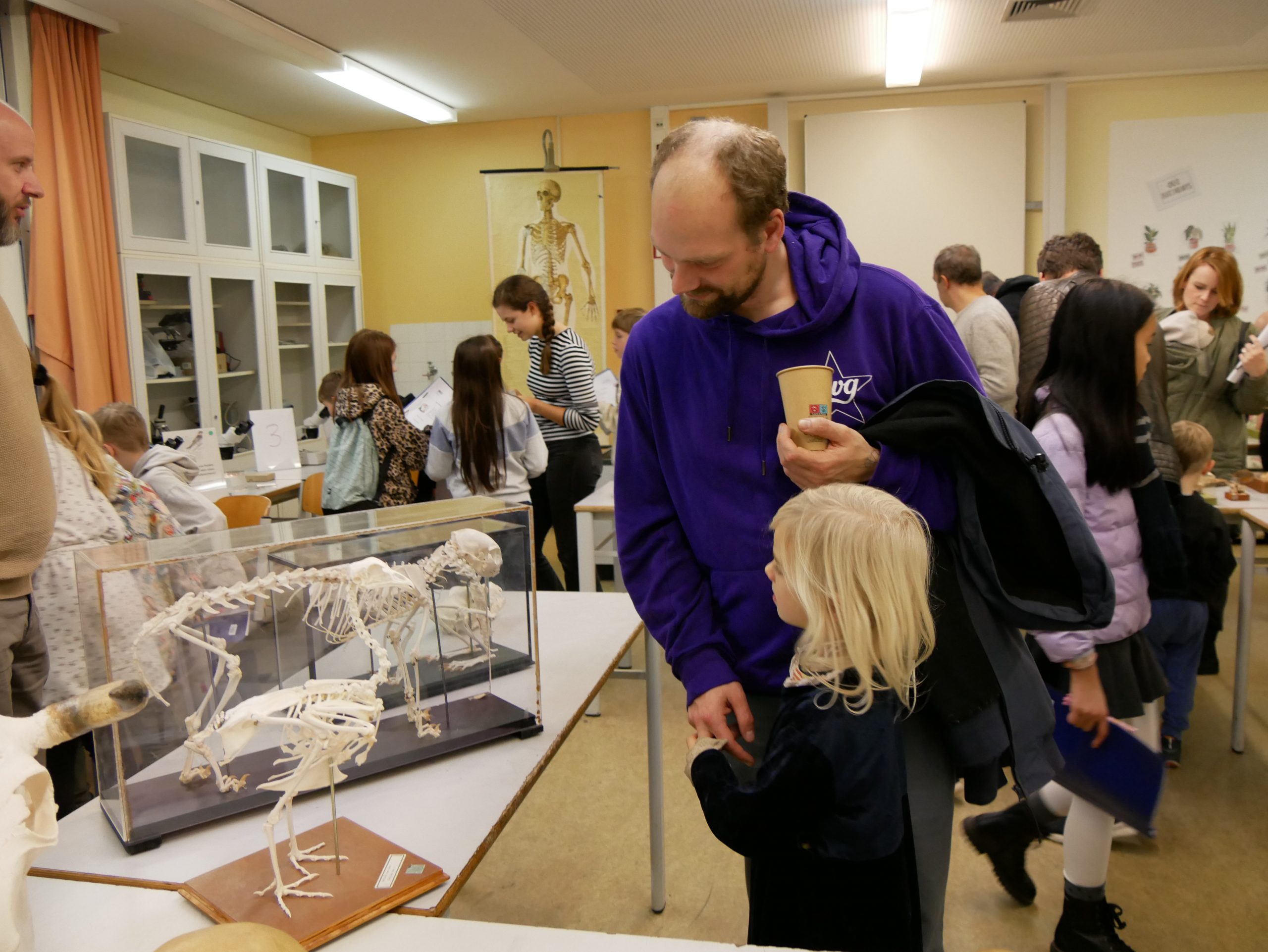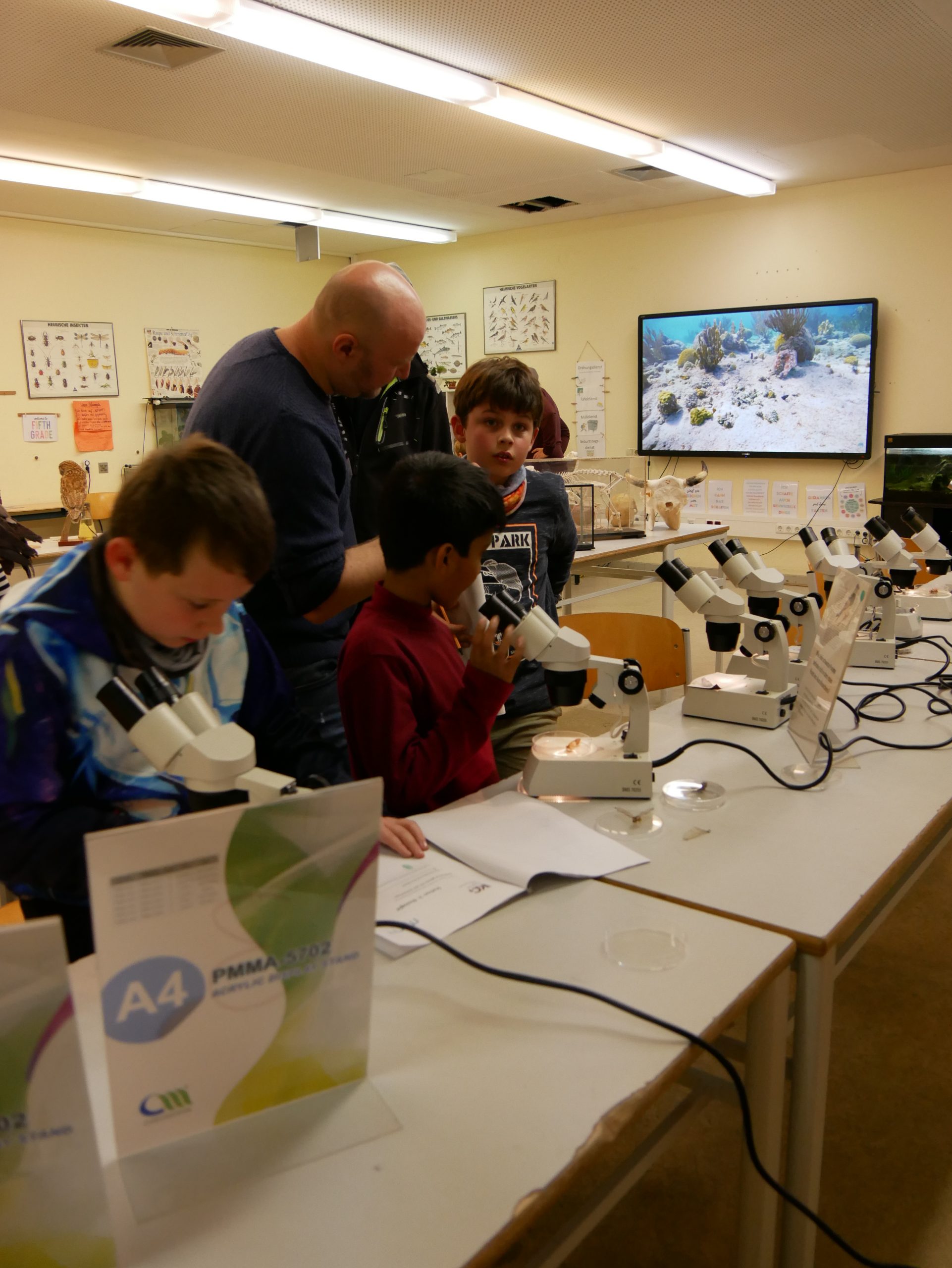 Die Biologie bot einen faszinierenden Einblick in die Welt des Lebens. Unter dem Mikroskop konnten kleine sowie große Forscherinnen und Forscher Insekten aus nächster Nähe betrachten. Auch Tierpräparate, Knochen und weitere interessante Forschungsobjekte wurden untersucht.