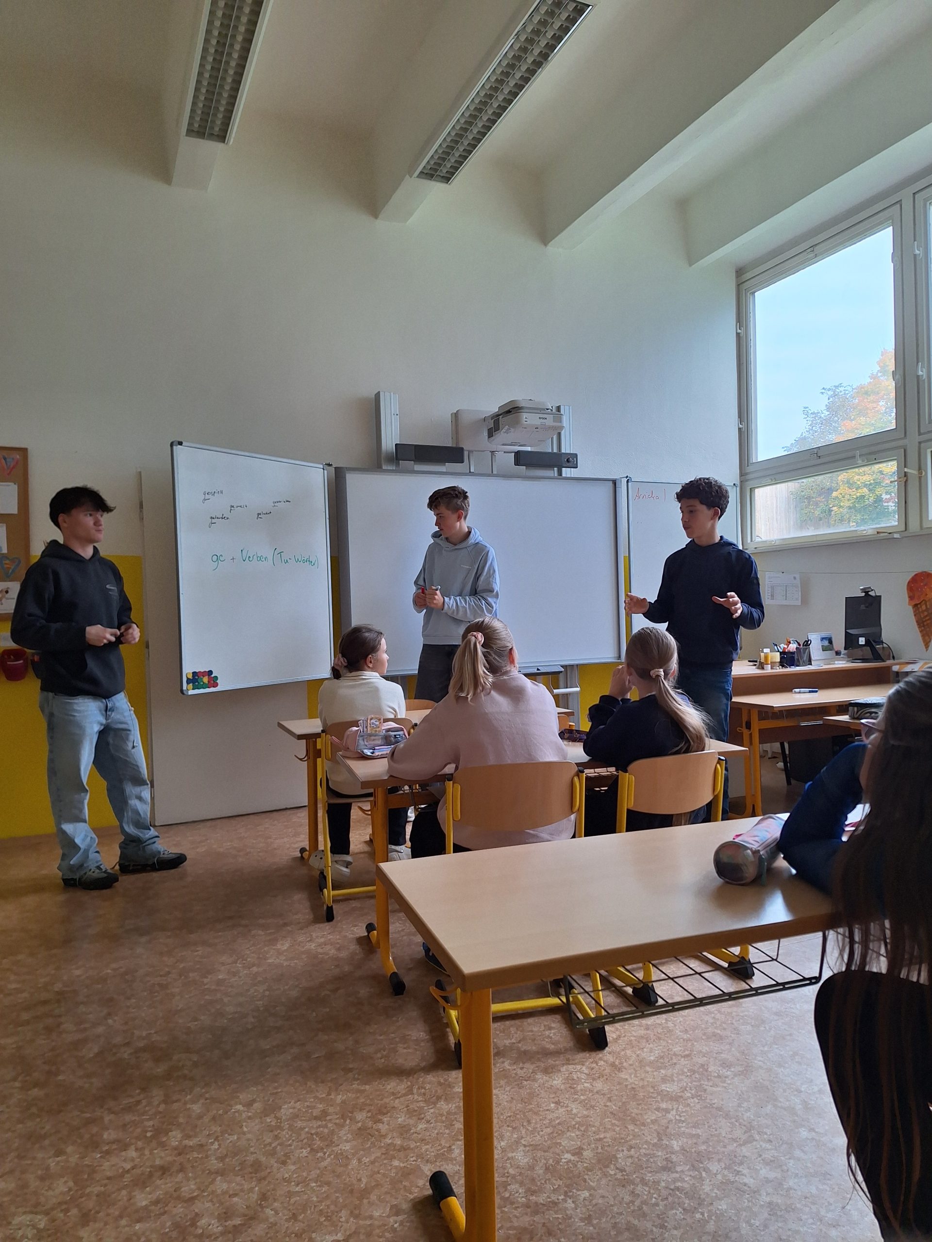 Ein weiterer kulturellen Programmpunkt wurde dann am Mittwoch gesetzt bei der Besichtigung des Goethe-Instituts in der Altstadt. Dort erhielten die Schüler:innen eine Führung durch eine Ausstellung, die zeigt, wie ein Film in einzelnen Schritten entsteht, dies war besonders interessant für die Schüler:innen, weil sie die eigenen Film- und Fernseherfahrungen verknüpfen konnten. Am Donnerstagabend kamen die Praktikanten am Thomas-Mann-Gymnasium zusammen und berichteten der stellvertretenden Schulleiterin Frau Petrova von ihren Erfahrungen und Ergebnissen an den Praktikumsstellen. Anschließend stand ein Rundgang durch die Partnerschule auf dem Programm, und die Schülerinnen und Schüler bekamen von ihren Austauschpartnerinnen die Schule gezeigt. In der nächsten Woche wird das Praktikum fortgesetzt und weitere wichtige Erfahrungen durch die Schüler:innen gesammelt werden.
