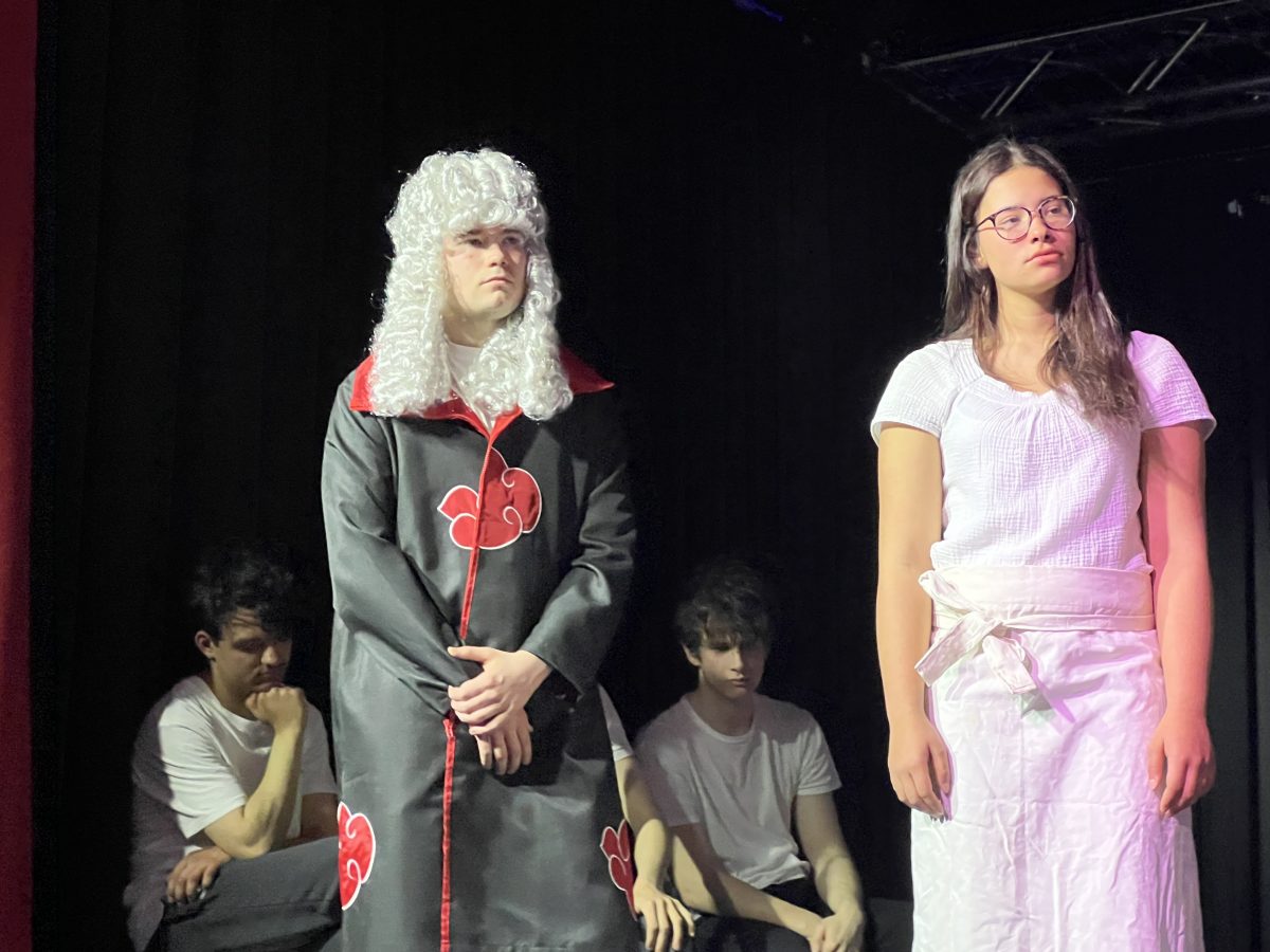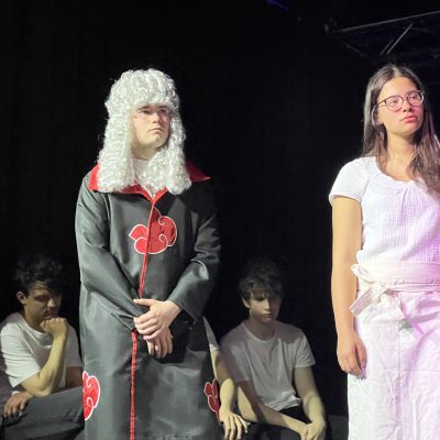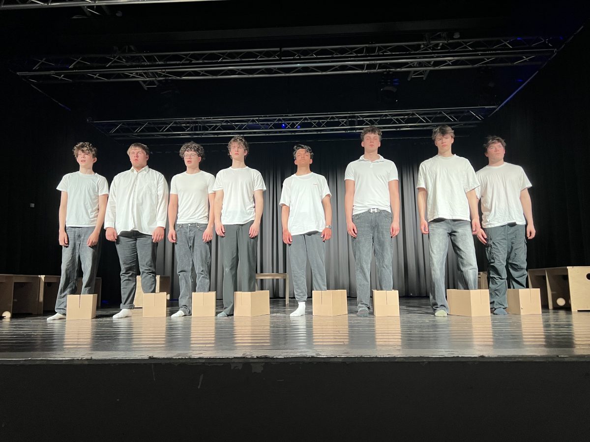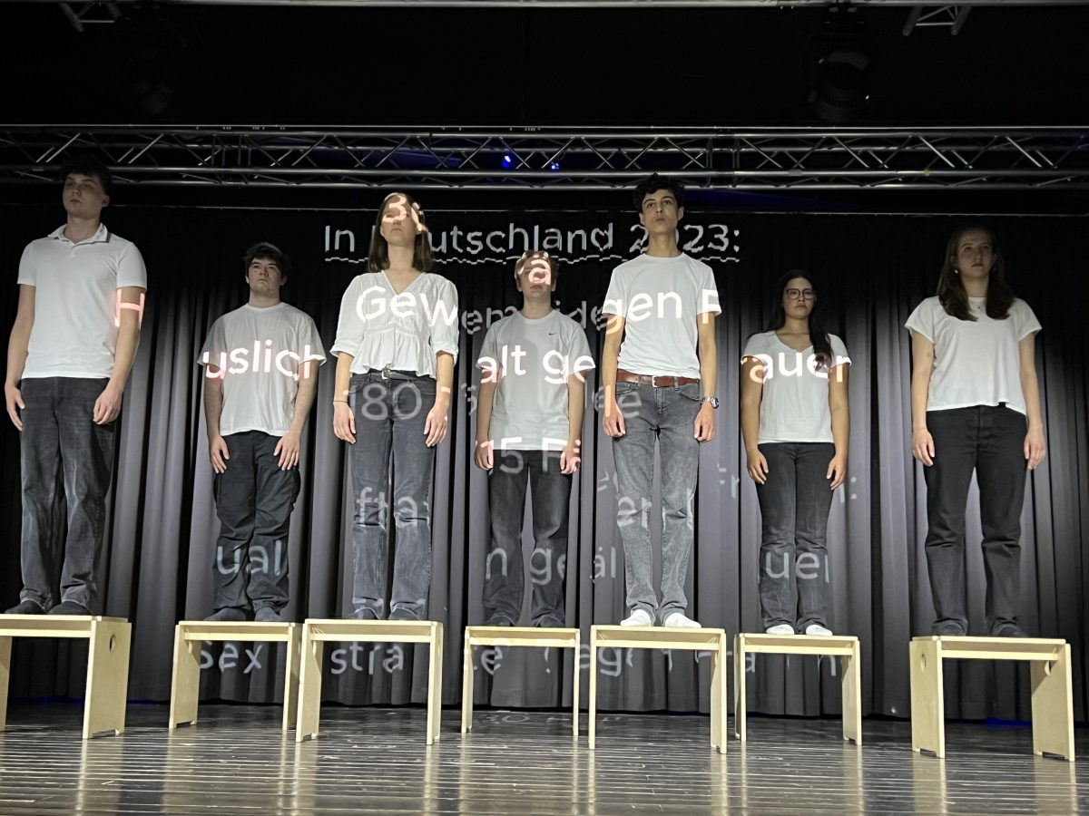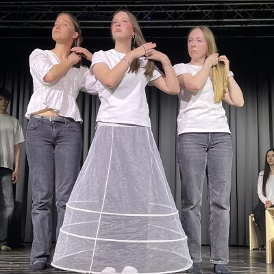 Am Donnerstag, den 09. April, lud der Theaterkurs der S4 zur öffentlichen Aufführung seines selbst erarbeiteten Stückes „Scherben“ ein, in dem sich die Schüler:innen mit Kleists „Zerbrochnem Krug“ und der #MeToo-Bewegung auseinandersetzen.